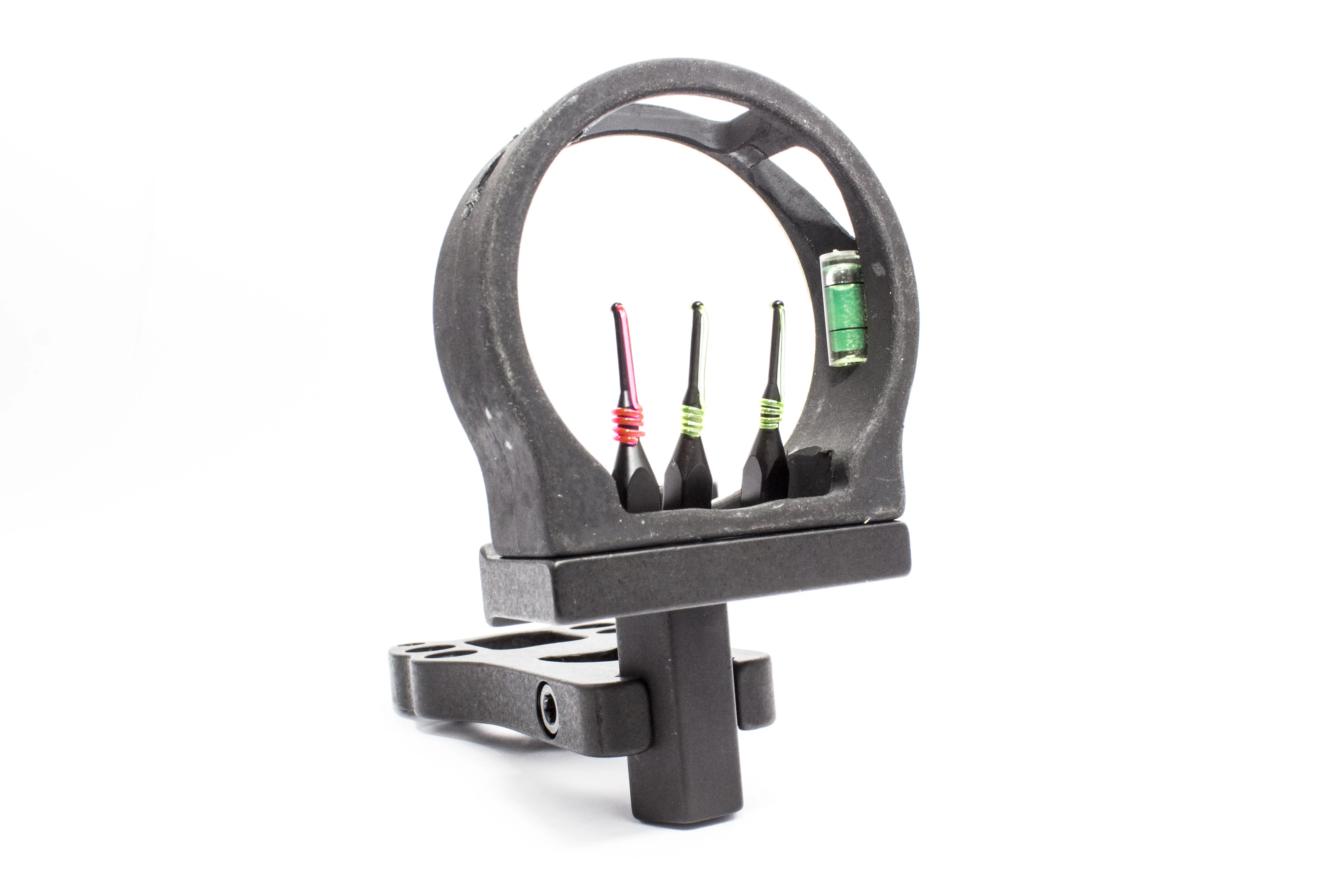 Celownik jest w pełni regulowany, może być montowany na łukach prawo i leworęcznych. Wbudowana poziomica pozwala korygować błędy trzymania łuku i postawy.