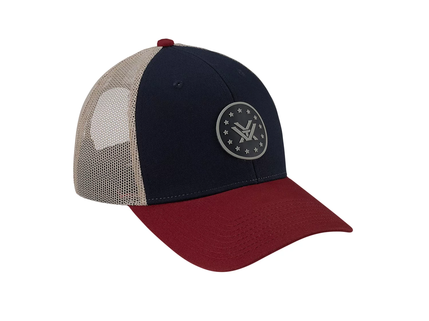 Czapka ma trójkolorowe wykończenie nawiązujące do barw flagi Stanów Zjednoczonych. Tylny panel wykonany z drobnej siatki poliestrowej zapewnia doskonałą wentylację podczas upalnych dni.