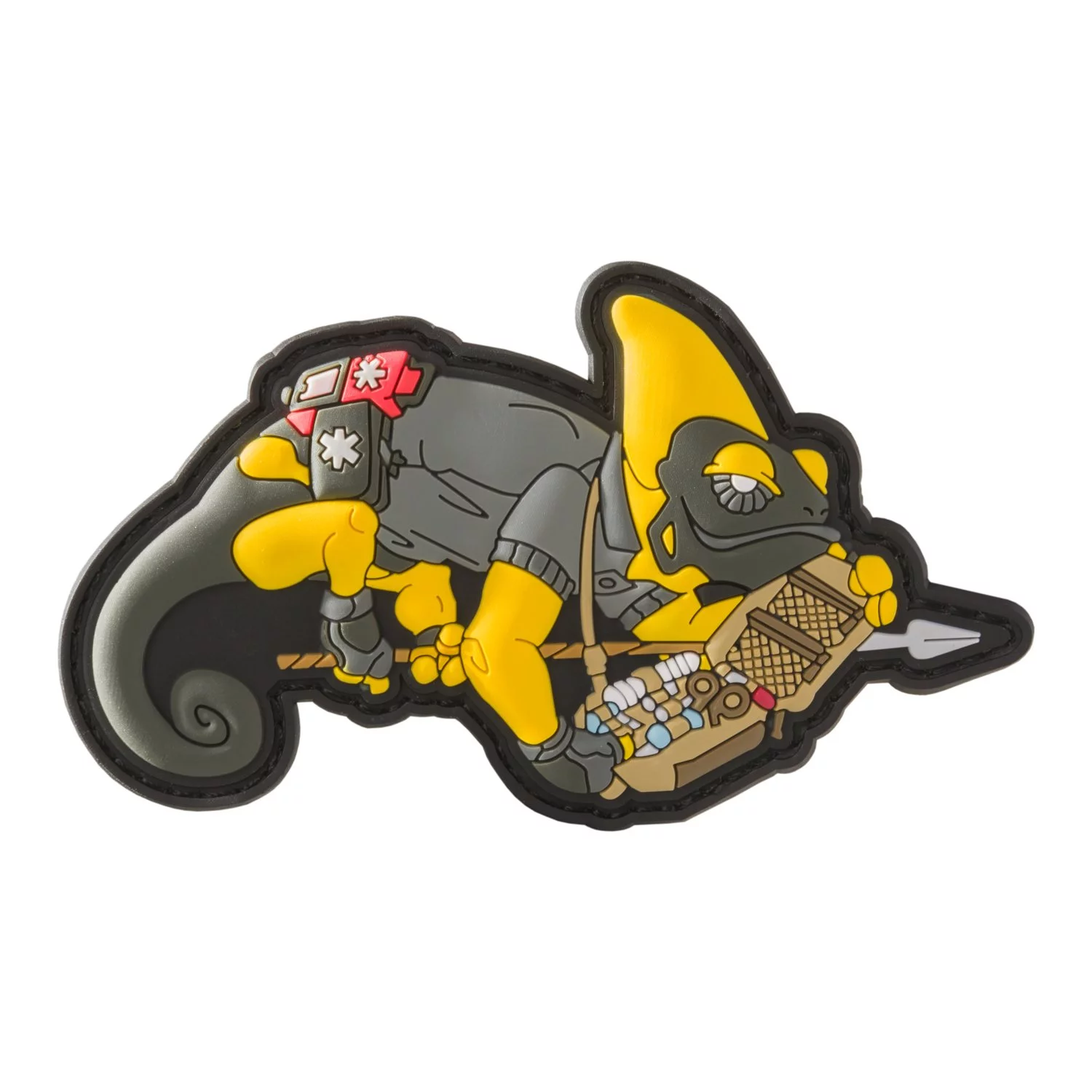 Specjalna wersja emblematu z kameleonem, bazująca na logo Helikon-Tex®, nawiązująca jednocześnie do linii MEDICAL. Kameleon na emblemacie ubrany jest w koszulkę URBAN Polo. Na pasie zamontowane ma MINI MED KIT® oraz UNIVERSAL MED INSERT®. W łapach trzyma AUTOMOTIVE MED KIT® oraz typową dla Helikon-Tex® włócznię.