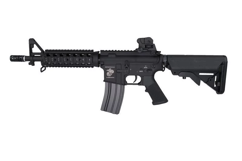 Replika karabinka SA-B02 marki Specna Arms wykonana została w przeważającej części z jednolitego stopu cynku i aluminium, z zastosowaniem elementów stalowych w najbardziej newralgicznych punktach repliki