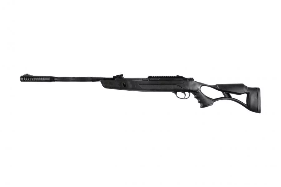 Wiatrówka ta jest również wyposażona w tłumik dźwięku, co zmniejsza hałas podczas strzelania.