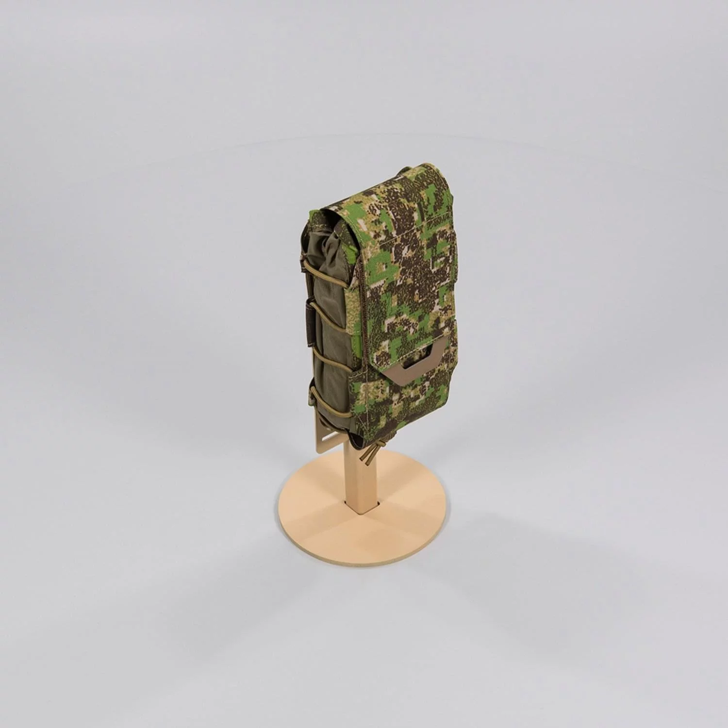 Wąska, pionowa konfiguracja indywidualnej apteczki pierwszej pomocy. Ten trzyczęściowy IFAK został zaprojektowany tak, aby pasował do panelu bocznego chest rigu lub na pasku - zabierając podobną nieruchomość PALS jak woreczek na magazynek.