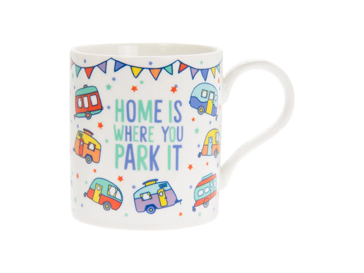 Ceramiczny kubek z motywem campera będzie doskonałym prezentem dla wszystkich miłośników caravaningu, którym bliska jest maksyma „... Dom jest tam, gdzie go zaparkujesz”.