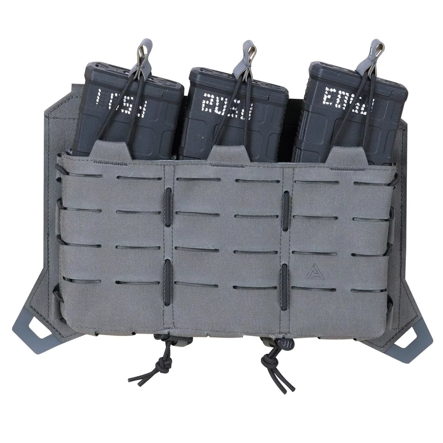 Zrobiona z wytrzymałego materiału Cordura ładownica na trzy magazynki. Dopasowana do mocowania w bocznych otworach przedniego panelu kamizelki Spitfire.