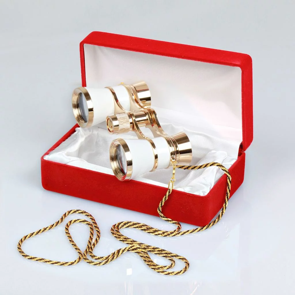 Lornetki teatralne Delta Optical 3x25 są to stylowe lornetki ze złotym łańcuszkiem, dostępne w trzech wersjach kolorystycznych – czarnej, wiśniowej oraz perłowej. Zapakowano je w gustowne czerwone pudełko o gładkiej i aksamitnej powierzchni. Trzykrotne powiększenie zbliży Cię do centrum wydarzeń nawet z ostatnich rzędów teatru, opery lub filharmonii. Regulacja ostrości zagwarantuje zawsze ostry obraz, niezależnie od tego, czy nosisz okulary, czy nie. Niebanalny wygląd podkreśli Twój styl. Lekka, ważąca jedynie 160 g i mieszcząca się we wszystkich kopertowych torebkach lornetka teatralna Delta Optical to wyjątkowo praktyczny i elegancki dodatek do wieczorowej kreacji!
