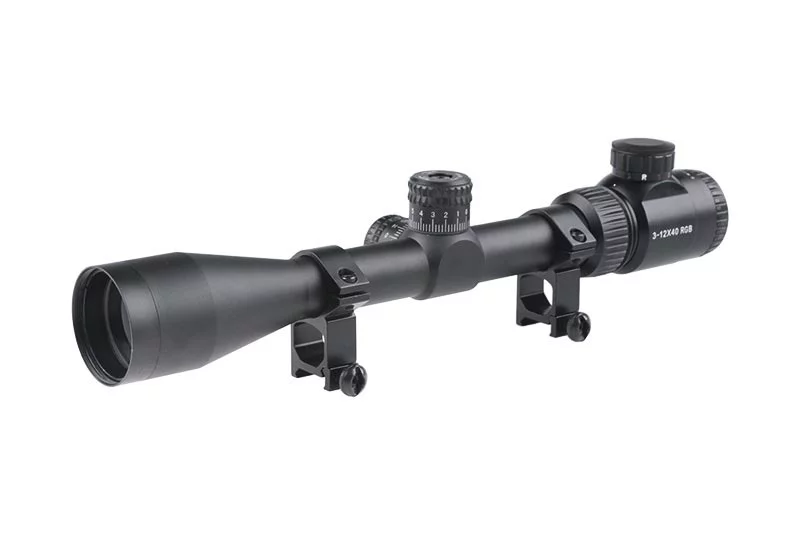 Wysokiej jakości luneta o powiększeniu 3-12x40 firmy Theta Optics wykonana jest z wytrzymałego metalu. Luneta posiada 3 kolory podświetlenia: czerwony, zielony oraz niebieski. Posiada także płynną regulację w pionie i poziomie. Zasilanie stanowi bateria CR2032. Produkt montowany na standardowej szynie RIS 22mm.
