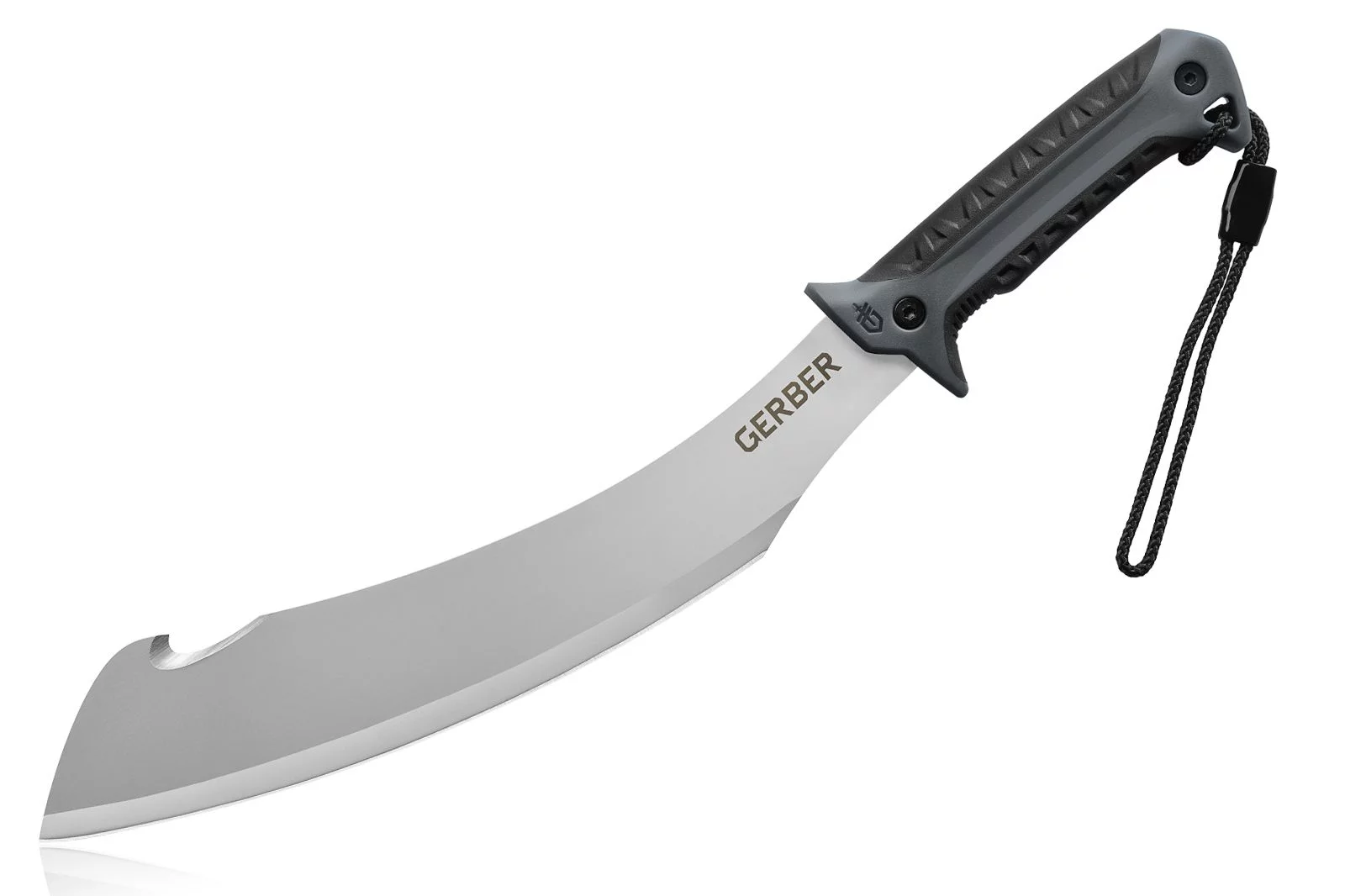 W zestawie: smyczka na rękę, nylonowa pochewka, maczeta Gerber Broadcut.