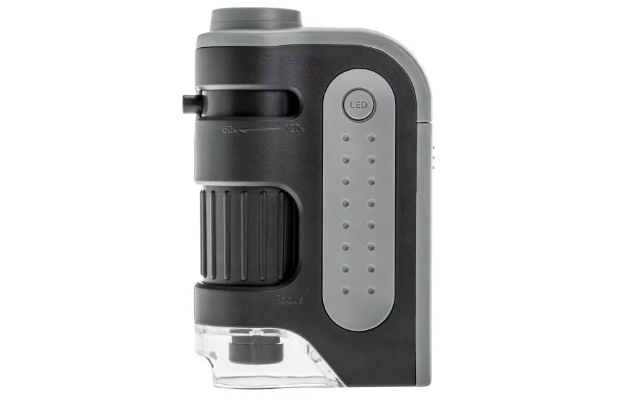 Mikroskop kieszonkowy Carson MicroBrite Plus 60-120x posiadający duże powiększenie 60-120 x. Nieocenione narzędzie, które to w prosty sposób uatrakcyjni każde szkolenie, lekcję biologii czy też prezentację. Posiada wbudowaną diodę LED, która rozświetla prezentowany obraz. Do zasilania potrzebna jedna bateria AA, czyli popularny paluszek.