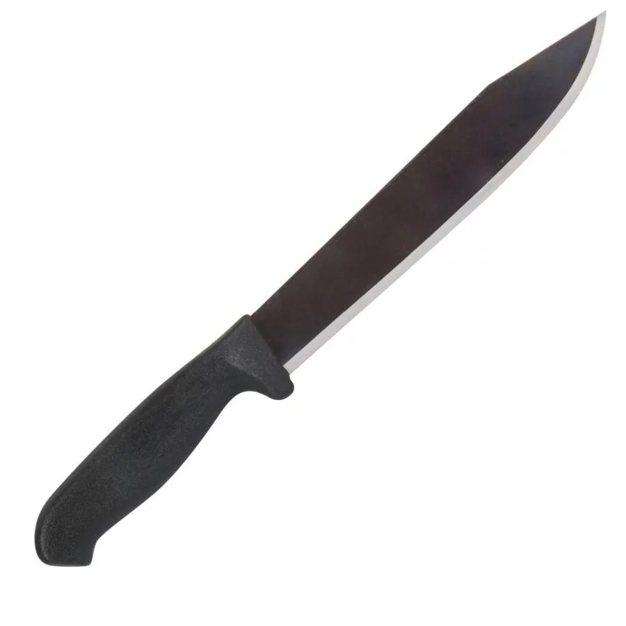 Głownię o profilu clip point wykonano ze stali węglowej zahartowanej do twardości 58-60 HRC. Ergonomicznie wyprofilowana rękojeść została wykonana z wytrzymałego polipropylenu. Dzięki chropowatej fakturze chwyt podczas pracy z nożem jest znacznie pewniejszy, nawet w sytuacji gdy dłoń jest mokra lub zabrudzona.