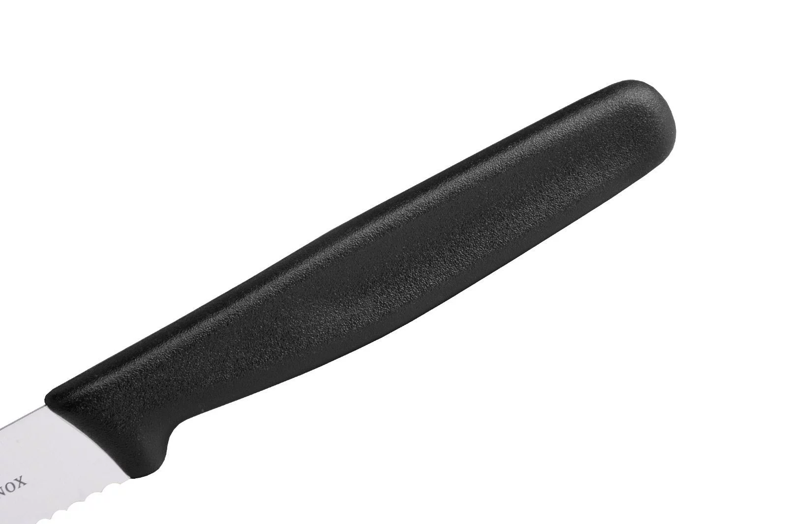 Nóż został wykonany z wysokiej jakości nierdzewnej stali produkowanej na potrzeby szwajcarskiej  firmy Victorinox. Stal ta gwarantuje bardzo długie trzymanie ostrości oraz całkowitą odporność na korozję. Nawet jeśli zdarzy się nam zostawić brudny nóż w zlewozmywaku na noc – nie musimy się o nic obawiać, rdza z pewnością się nie pojawi. Ząbkowane ostrze o łagodnie zakończonym czubku, posiada doskonałe właściwości tnące oraz zapewnia bezpieczeństwo podczas użytkowania. Nóż przeznaczony jest do krojenia min. warzyw, owoców, kiełbas, najczęściej jednak służy jako uniwersalny nóż kuchenny. Jego poręczność umożliwia również wykonywanie subtelnych dekoracji, usuwanie nasion z warzyw i owoców oraz szeregu innych precyzyjnych czynności wykonywanych w kuchni. Zęby w tym nożu zostały równomiernie rozłożone na całej długości i już od nowości charakteryzują się wybitną ostrością oraz agresją cięcia. Dużą zaleta jest fakt, że noże ząbkowane tego typu wymagają zdecydowanie rzadszego ostrzenia niż noże z ostrzem plain (gładkim). Dzięki temu nóż pozostaje bardzo długo ostry co jest bardzo ważne jeśli szukamy produktu, który będzie zawsze gotowy do użycia.