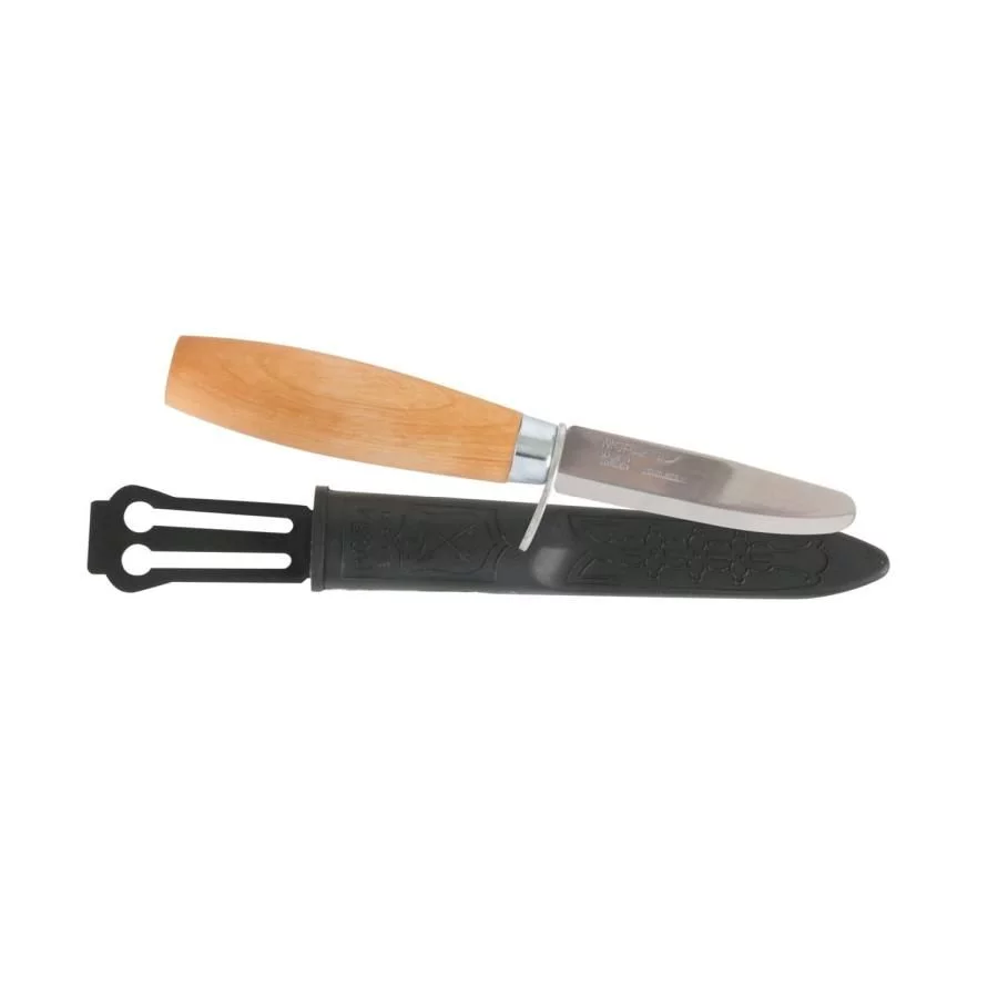 Nóż Rookie to młodszy brat popularnego noża Scout. Nowy model ma jeszcze bardziej zaokrąglony czubek, aby zapewnić jeszcze większe bezpieczeństwo. Razem z osłoną na palce, zapobiegającą zsuwaniu się ich na ostrze, Rookie jest idealnym wyborem na pierwszy nóż dla dziecka. Ostrze wykonane jest z wysokiej jakości stali nierdzewnej zostało poddane obróbce i testom w fabryce Morakniv. Mały, owalny chwyt jest odpowiedni dla dziecięcych dłoni, a naturalne drewno jest dobre do trzymania i pracy. Czarna, polimerowa pochewka chroni zarówno nóż jak i użytkownika w momencie kiedy nóż nie jest używany