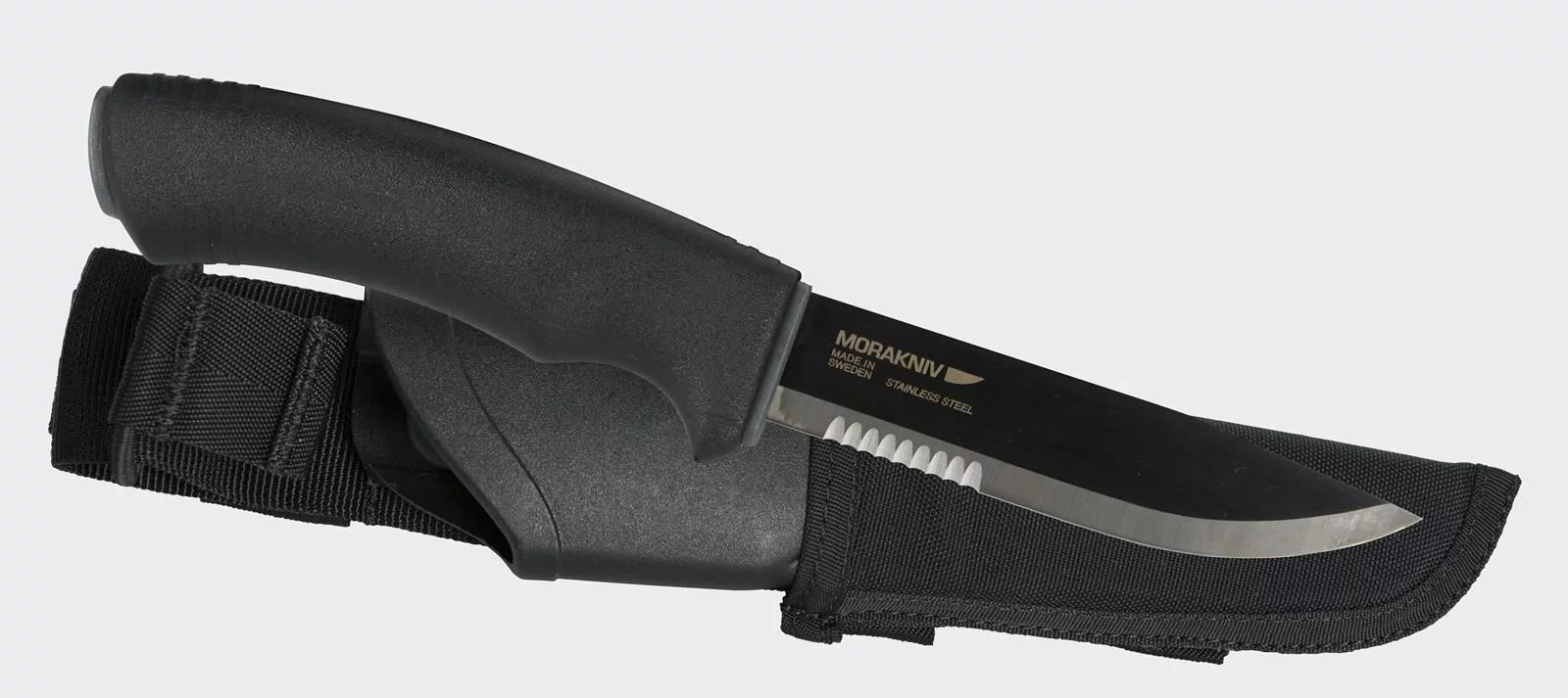 Nóż Morakniv Tactical SRT Stainless Steel Czarny to ostry jak brzytwa nóż, z czarną klingą grubości 3,2 mm jest jednym z najbardziej wytrzymałych noży jakie kiedykolwiek zostały wyprodukowane przez Mora of Sweden. Częściowo ząbkowane ostrze ze stali nierdzewnej ma czarną powłokę, która chroni przed korozją. Grzbiet klingi może być użyty z krzesiwem, jest ostry specjalnie w tym celu. Wyprodukowany przez szwedzką firmę Mora of Sweden.