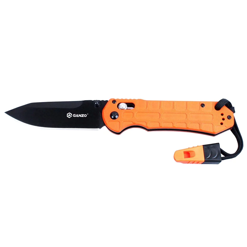 Ganzo G7453P-OR-WS z gwizdkiem to poręczny nóż składany, w którym zastosowano głownię ze stali nierdzewnej 440C, sprawdzoną blokadą G-lock, obustronny kołek umożliwiający błyskawiczne rozłożenie ostrza jedną ręką oraz smyczkę z gwizdkiem sygnalizacyjnym.