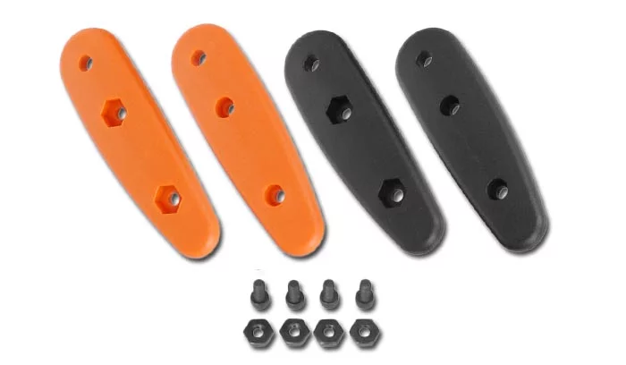 W komplecie znajdują się okładziny w kolorze czarnym i pomarańczowym (blaze orange) oraz komplet śrub i nakrętek.
