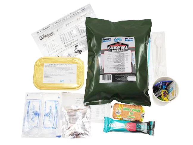 Pakiet Arpol przetrwaniowy 2 to jednoosobowa racja żywności o wartości energetycznej 1019 kcal, która dzięki zastosowaniu podgrzewacza chemicznego może być przygotowana bez rozpalania ognia.
