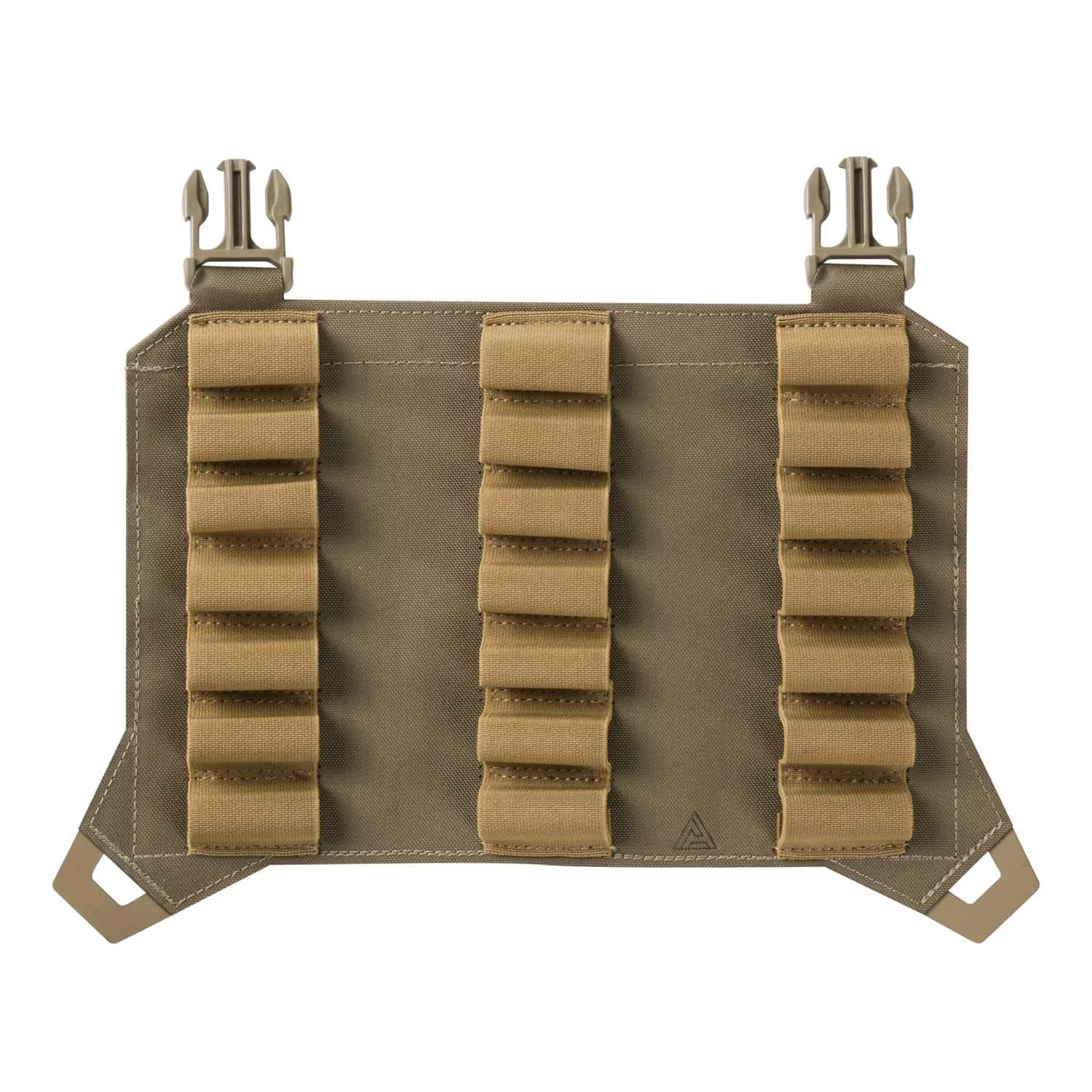 SHOTGUN SHELL FLAP to dodatkowa klapka do SPITFIRE, której można użyć zamiast standardowej. Elastyczne pętelki naszyte na trzy kołnierze na powierzchnię przeznaczone są do przenoszenia standardowych nabojów do strzelby 12GA (cała klapka pozwala na przewożenie do 21 nabojów). Każdą kolumnę można z łatwością wykorzystać na inny rodzaj amunicji, bez ryzyka ich pomieszania, jak w przypadku standardowej ładownicy. Klapa jest montowana do dedykowanych portów klap w SPITFIRE lub do interfejsu Chest Rig za pomocą dołączonych sprzączek w konfiguracjach QD.