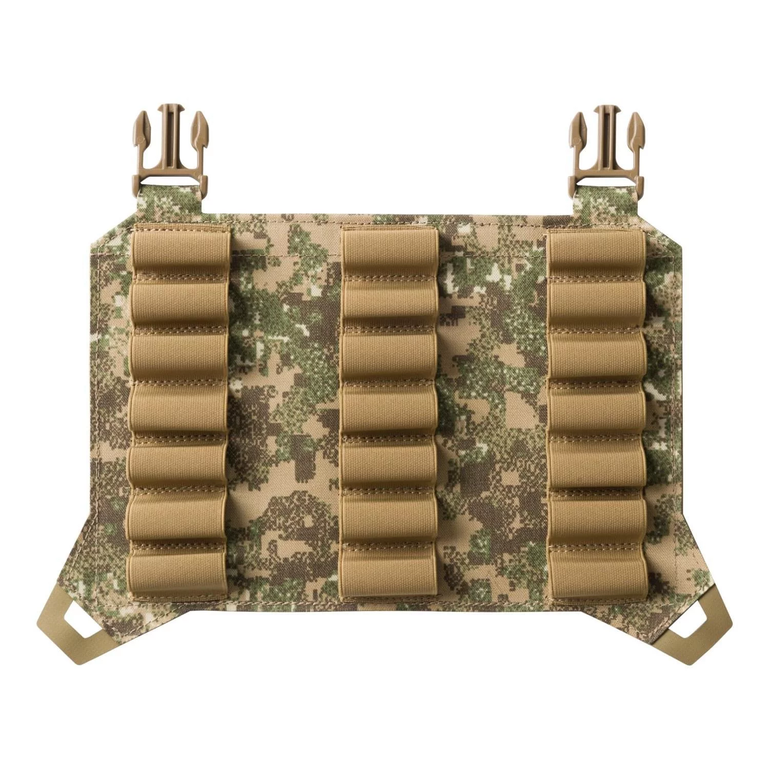 SHOTGUN SHELL FLAP to dodatkowa klapka do SPITFIRE, której można użyć zamiast standardowej. Elastyczne pętelki naszyte na trzy kołnierze na powierzchnię przeznaczone są do przenoszenia standardowych nabojów do strzelby 12GA (cała klapka pozwala na przewożenie do 21 nabojów). Każdą kolumnę można z łatwością wykorzystać na inny rodzaj amunicji, bez ryzyka ich pomieszania, jak w przypadku standardowej ładownicy. Klapa jest montowana do dedykowanych portów klap w SPITFIRE lub do interfejsu Chest Rig za pomocą dołączonych sprzączek w konfiguracjach QD.