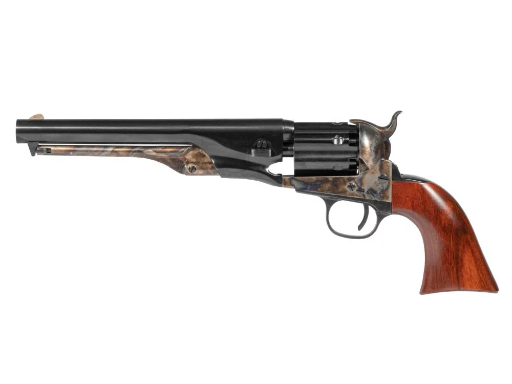 Uberti Cattleman 1861 to potężny rewolwer czarnoprochowy, z profilowanym orzechowym chwytem, grawerowanym bębenkiem oraz najdłuższą lufą, która zapewnia najwyższą celność na dużych dystansach.