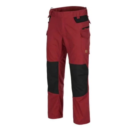 Pilgrim to spodnie wykonane z tkaniny niezwykle wytrzymałej, a jednocześnie lekkiej tkaniny DuraCanvas. Tył spodni został lekko podwyższony dzięki czemu zapewniają jednocześnie ochronę okolicy nerek. Dodatkowo w karczek spodni wszyta została cienka pianka zapewniająca dodatkowy komfort. Spodnie mają w sumie osiem kieszeni. Zapinane na guziki duże kieszenie na udach zostały podszyte siatką w celu zwiększenia cyrkulacji powietrza gdy kieszenie są otwarte. Klasyczne kieszenie biodrowe mają wzmocnione krawędzie, aby chronić je przed szybkim zużyciem klipsami od noży. Pomiędzy kieszeniami cargo a biodrowymi znajdują się dodatkowe kieszenie zapinane na zamek. Z tyłu spodni umieszczone zostały zapinane na guziki kieszenie ze wzmocnionymi krawędziami. Obwód pasa oraz dół nogawek są regulowane. Spodnie wyposażone zostały w minimalistyczne punkty podpięcia szelek. Szerokie szlufki spodni umożliwiają przeplecenie nawet 40mm pasa, a umieszczone z przodu dodatkowe pętle pozwalają na dowiązanie dodatkowego sprzętu. Dodatkowym atutem są guziki z oznaczeniem Helikon-Tex. Aby zapewnić większą szczelność przeciwko niewielkim opadom, materiał może zostać zaimpregnowany przy użyciu specjalnego wosku.