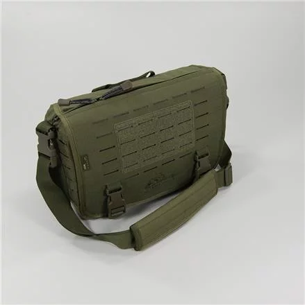 Direct Action® Small Messenger Bag® to lekka, kompaktowa i uniwersalna torba typu grab-bag. Komora główna torby pokryta została w całością pętelkową częścią Velcro, co umożliwia mocowanie dodatkowego wyposażenia takiego jak kabury czy ładownice. Na tylnej ścianie tej komory znajduje się obita pianką kieszeń dedykowana do bezpiecznego przenoszenia 11" laptopa lub innych urządzeń elektronicznych. D.A. Small Messenger Bag® została pokryta wycinanym laserowo systemem kompatybilnym z MOLLE/PALS. Torba wyposażona jest w regulowany pasek naramienny z poduszką pokrytą materiałem antypoślizgowym.